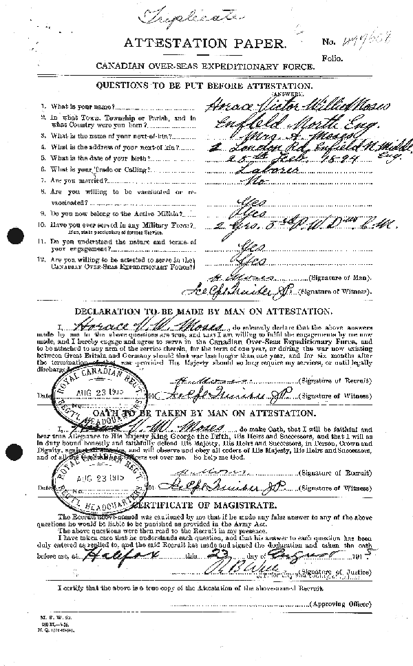 Galerie numérique de Soldat Horace Victor Willie Moses