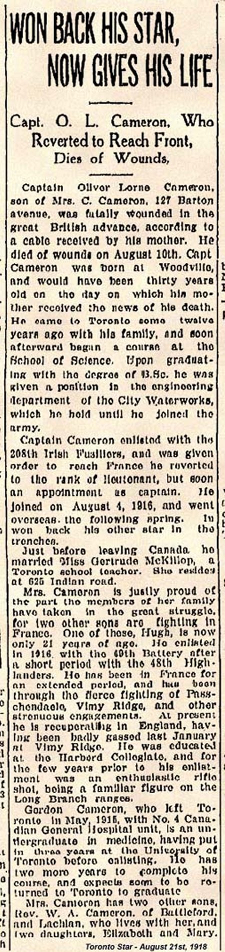 Galerie numérique de Lieutenant Oliver Lorne Cameron