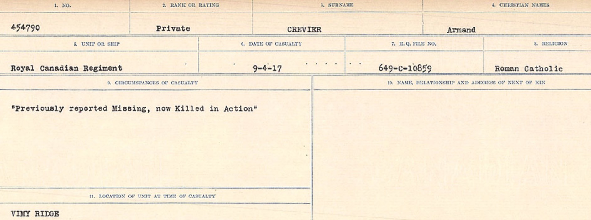 Galerie numérique de Soldat Armand Crevier