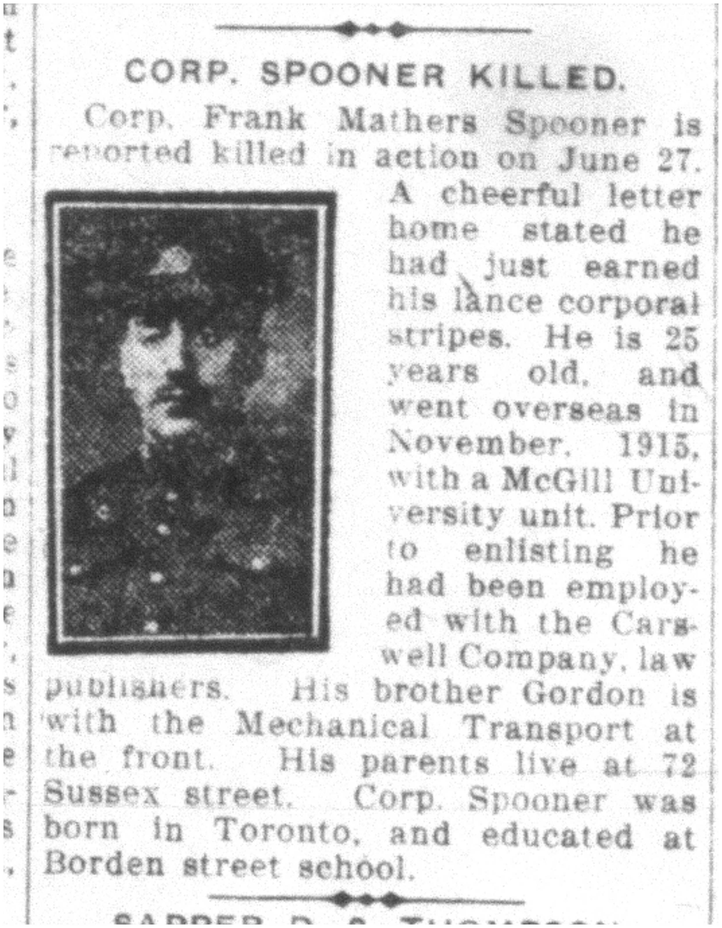 Galerie numérique de Caporal suppléant Frank Mathers Spooner
