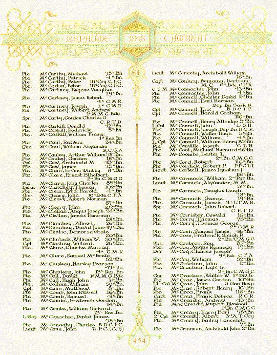 Page 454 du Livre du Souvenir de la Première Guerre mondiale.