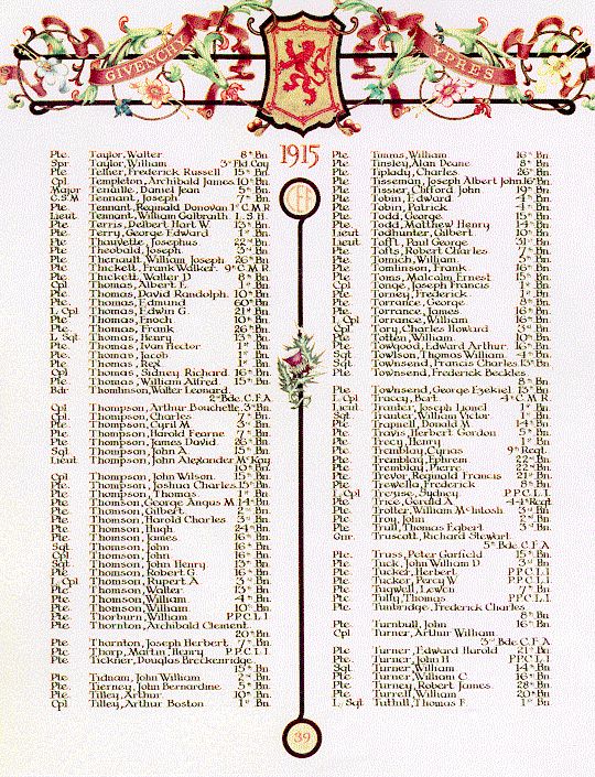 Page 39 du Livre du Souvenir de la Première Guerre mondiale.