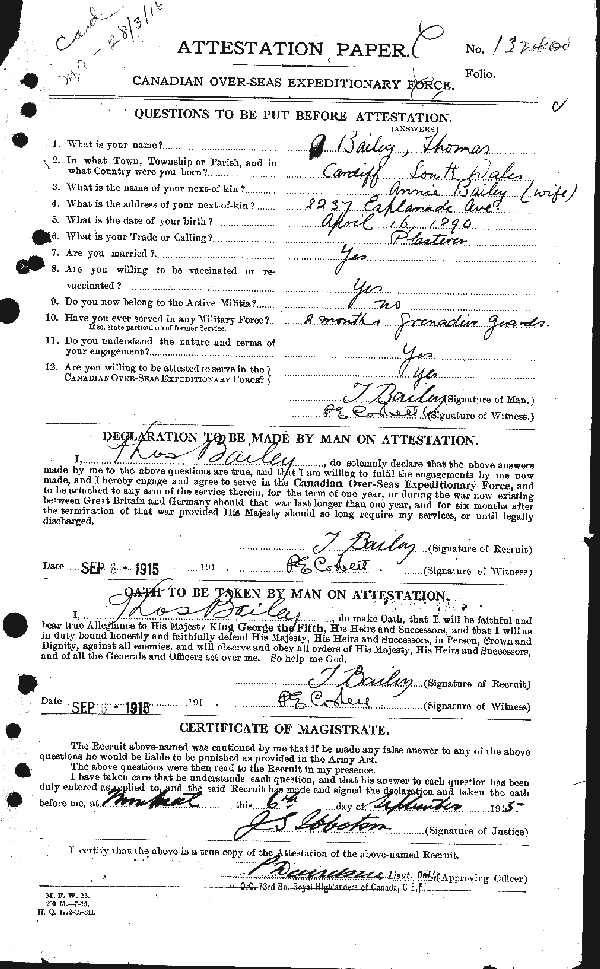 Galerie numérique de Caporal suppléant Thomas Bailey