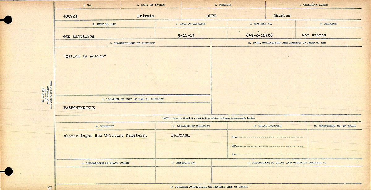 Galerie numérique de Soldat Charles Albert Cuff