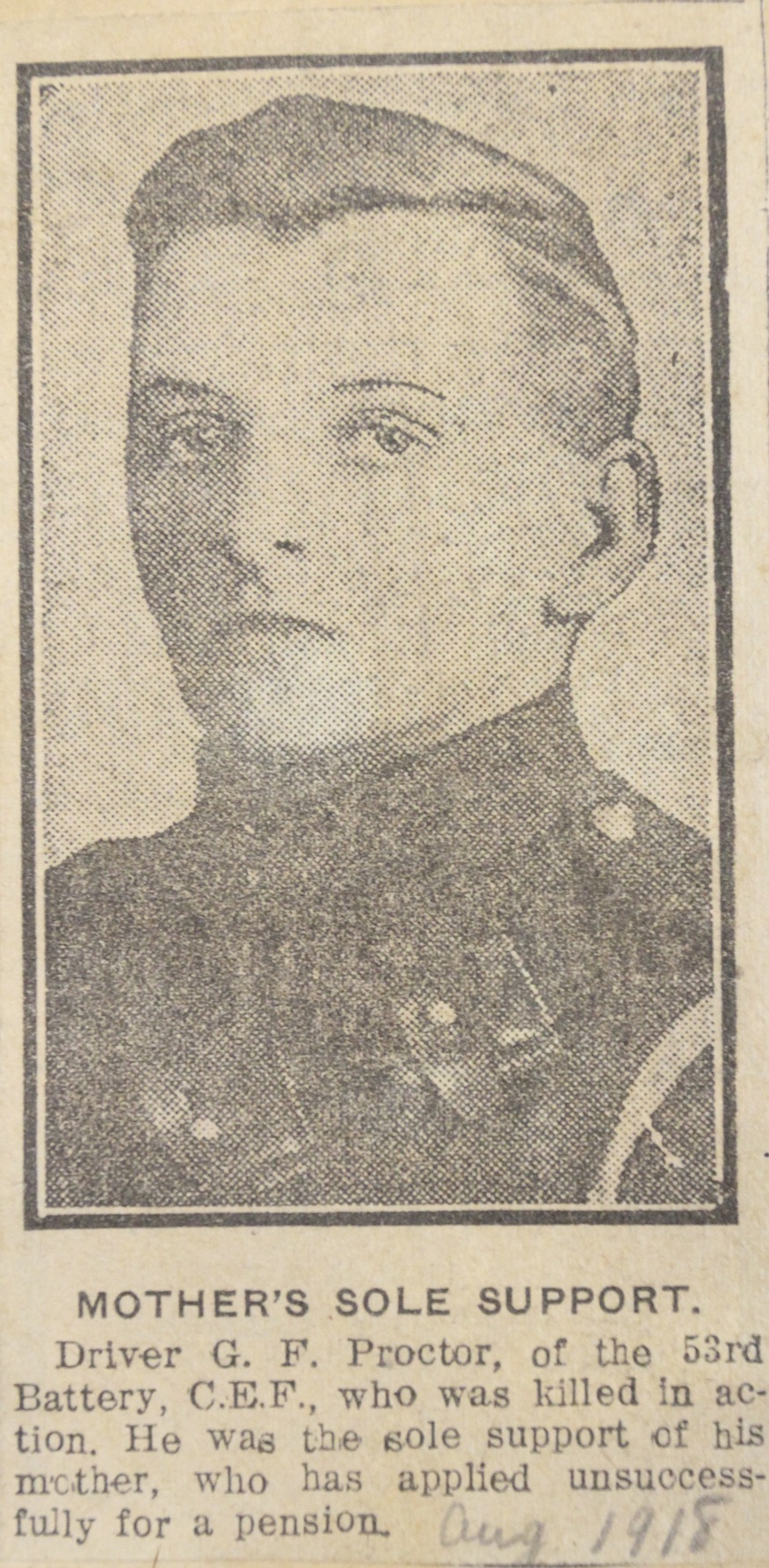 Fils de Mme M. A. Proctor, de 5921, Six Mile Rd., North Detroit, É.-U., et feu William Proctor.