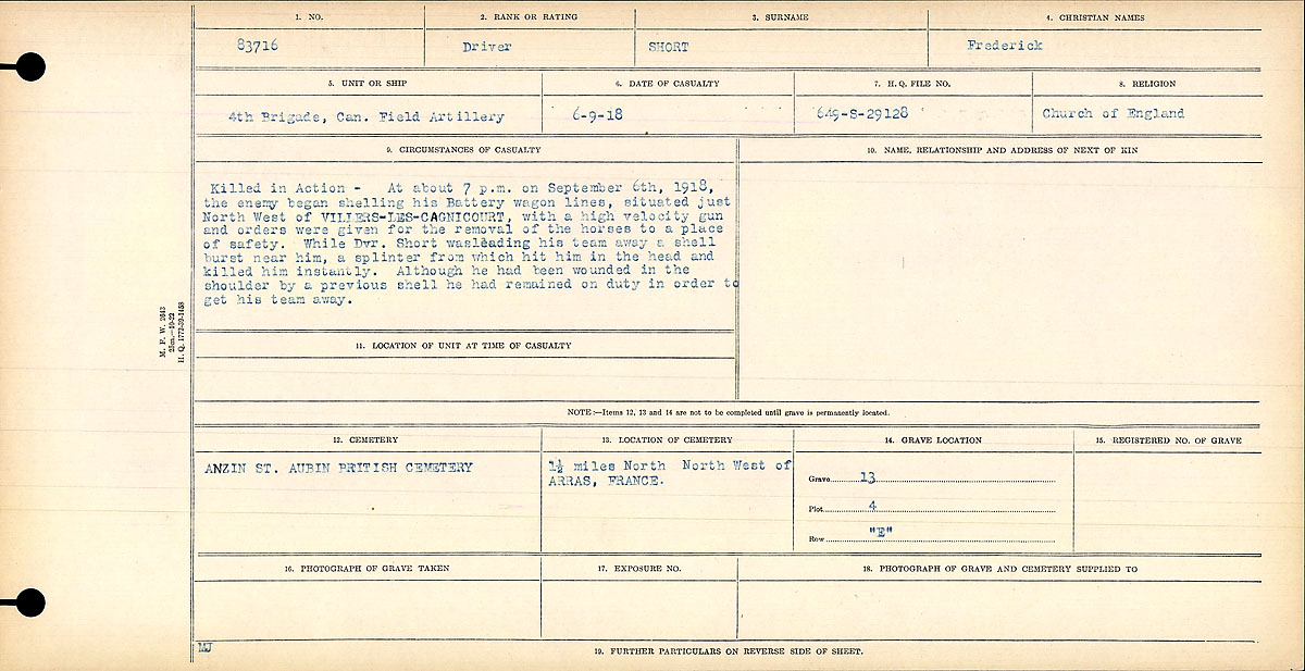 Originaire de Wareham. Fils de Robert et Elizabeth Short, de "Furzebrook," Queen Mary Avenue, Moordown, Bournemouth.