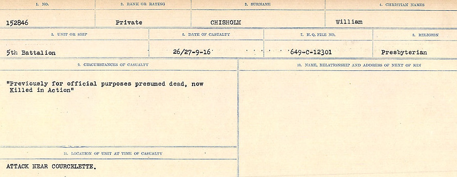 Fils de James et Jemima Chisholm, de 15, Hobart St., Kirriemuir, Écosse.