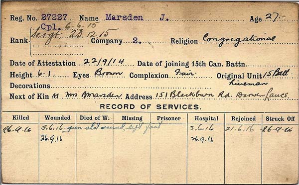 Fils de Betsy Marsden de Darwen, Lancashire, Angleterre.