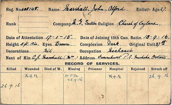 Fils de Harry A. et Annie C. Marshall, de London, Angleterre; époux de Clara J. Marshall, de Collingwood, Ontario.