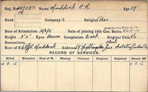 Unité/Régiment : Canadian Infantry (Central Ontario Regiment)