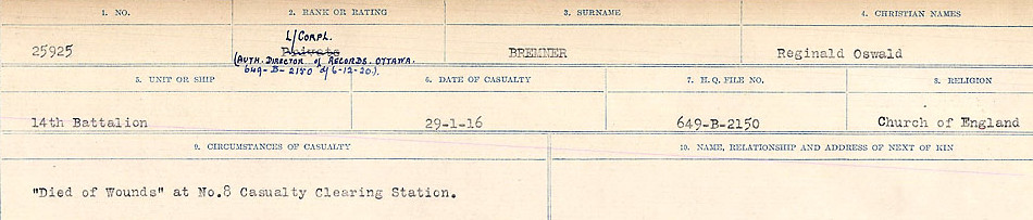Galerie numérique de Caporal suppléant Reginald Oswald Bremner