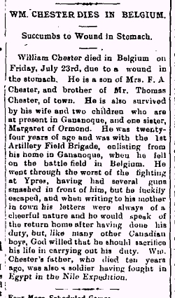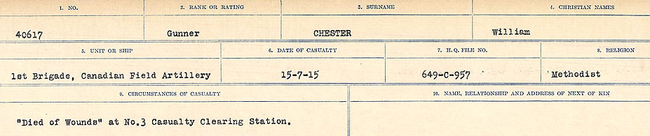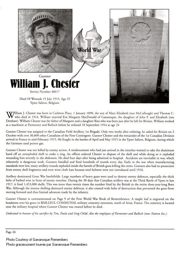 Époux d'Eve Chester de Gananoque, Ontario. Dans la vie civile, il était machiniste.