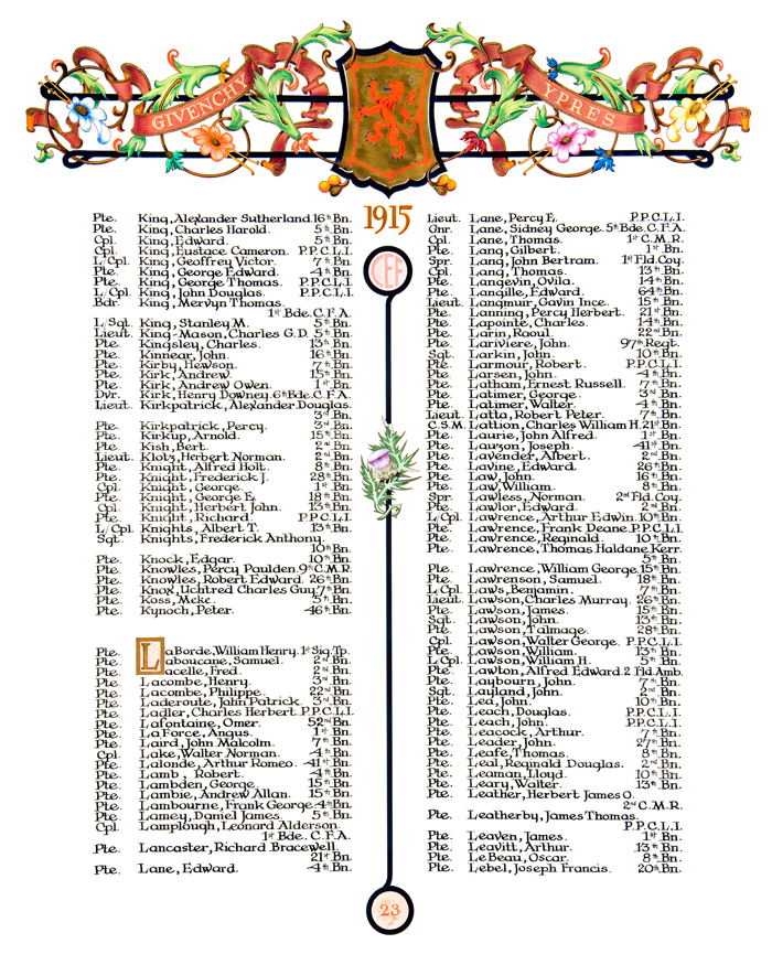 Page 23 du Livre du Souvenir de la Première Guerre mondiale.