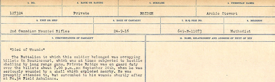 Unité/Régiment : 2nd Canadian Mounted Rifles (British Columbia Regt.)