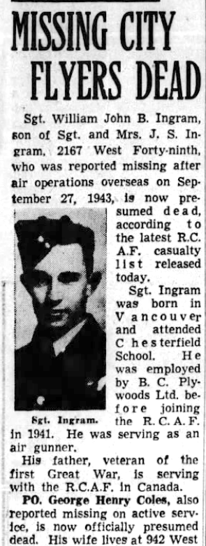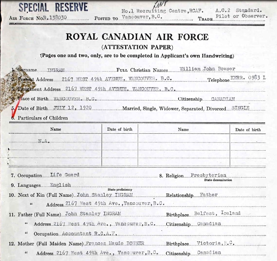 Fils de John Stanley et Frances Maude Ingram, de Vancouver, Colombie-Britannique, Canada.