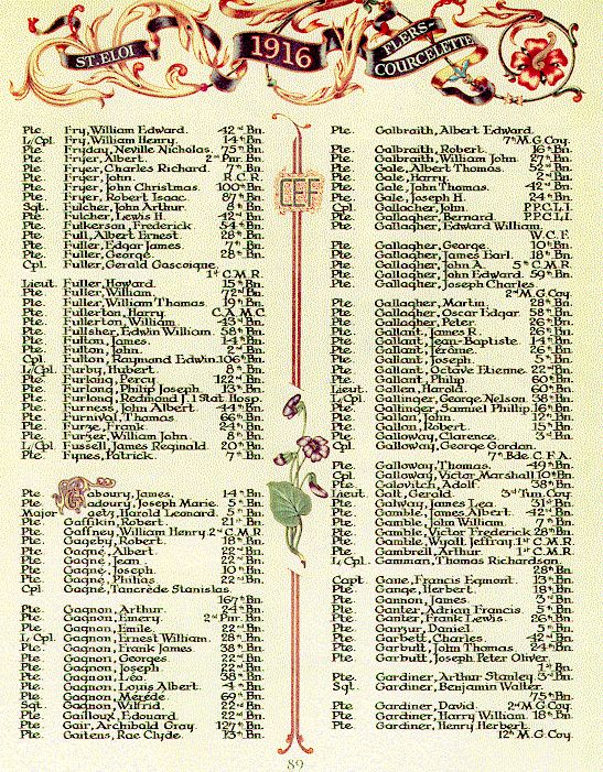 Page 89 du Livre du Souvenir de la Première Guerre mondiale.