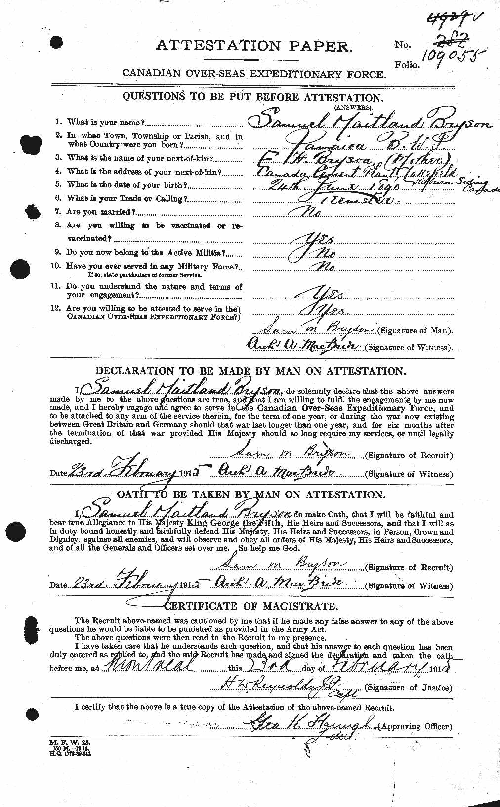 Galerie numérique de Soldat Samuel Maitland Bryson