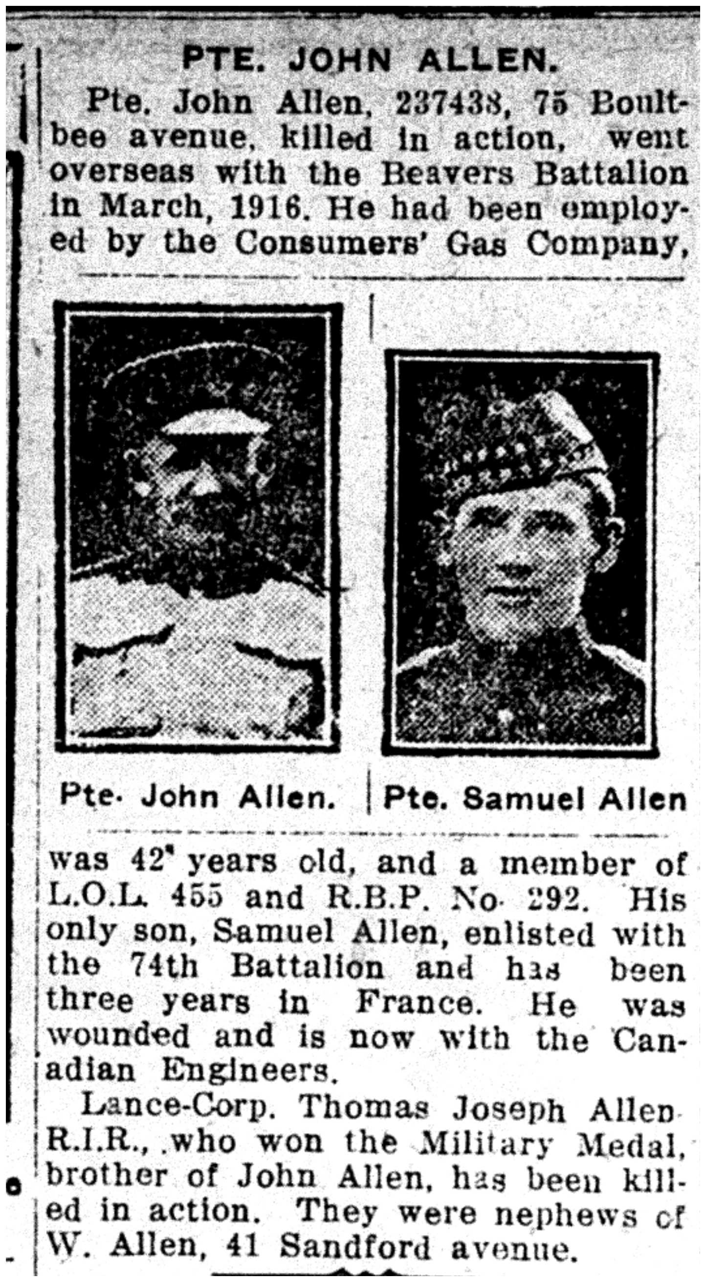 Fils de Samuel Allen, de Greenan, Loughgall, Co. Armagh, Irlande.