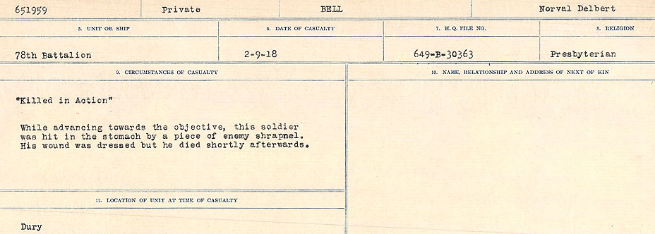Dury est un village du département du Pas-de-Calais situé à un kilomètre au nord de la route droite principale allant d'Arras à Cambrai (D939). Lorsque vous voyagez en direction de Cambrai sur la route D939, le Mémorial canadien de Dury est situé à 16 kilomètres environ d'Arras. Après le Mémorial, un panneau annonçant le cimetière se trouve à gauche, à 300 mètres, en direction de Dury. À 200 mètres de la route D939, il y a un panneau annonçant le cimetière à gauche. Le cimetière est situé dans les champs et on s'y rend en empruntant un sentier non pavé de 500 mètres.