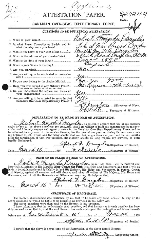 Galerie numérique de Lieutenant Robert Fargher Douglas