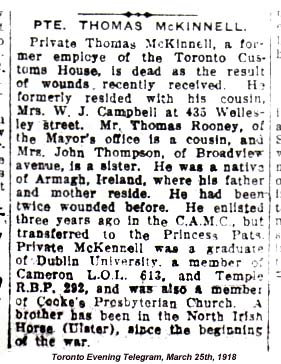 Fils de John McKennell, de Killylinn, Allistragh, Armagh, Irlande.