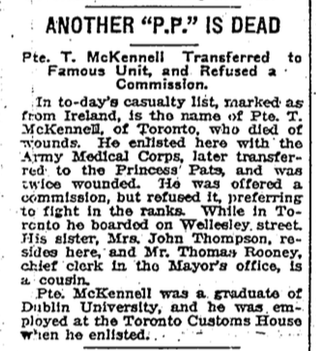 Unité/Régiment : Princess Patricia's Canadian Light Infantry (Eastern Ontario Regt.)