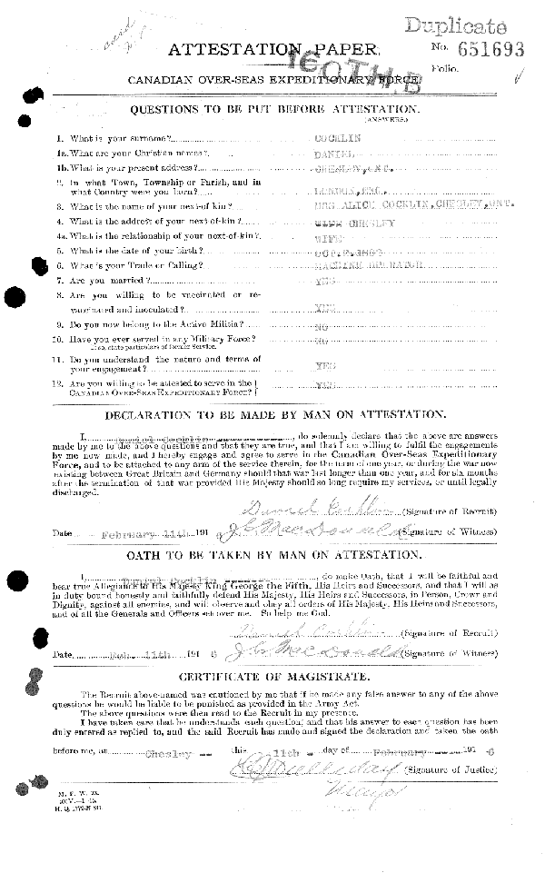 Galerie numérique de Soldat Daniel Cocklin