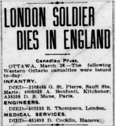 Époux de A. Cocklin, de 38, Cobourg Lane, Stratford, Ontario.