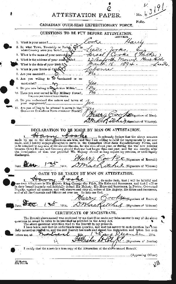 Galerie numérique de Sergent d'état-major Harry Cooke