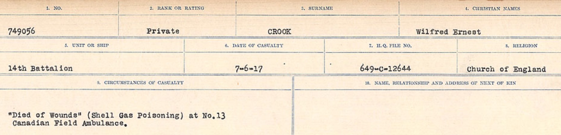 Galerie numérique de Soldat Wilfred Ernest Crook