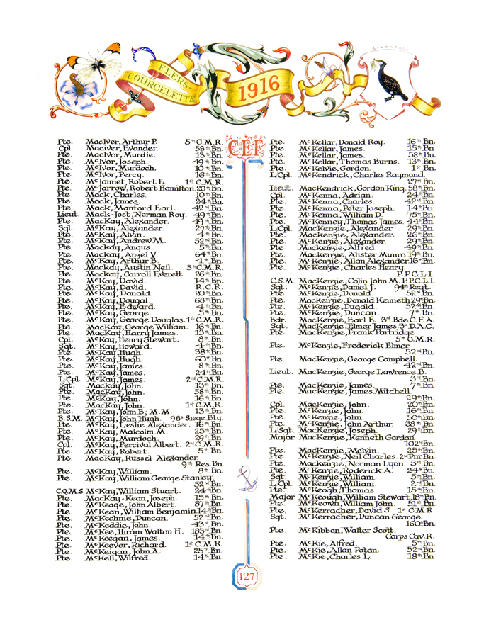 Page 127 du Livre du Souvenir de la Première Guerre mondiale.