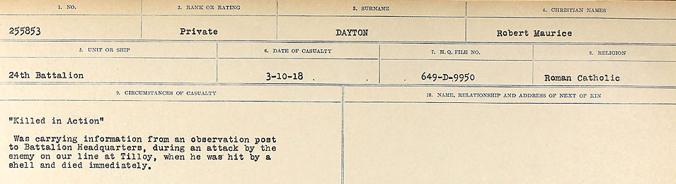 Galerie numérique de Soldat Robert Maurice Dayton