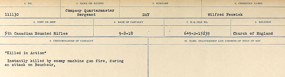 Galerie numérique de Sergent quartier-maître de compagnie Wilfred Fenwick Day