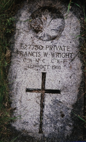 Fils de Marion Wright, de 19, Stret St., Setwich, Angleterre, et feu Frederick Bryan Wright, époux de Ada Frances Wright, de 163, London Rd., Bucklet, Dover, Angleterre.