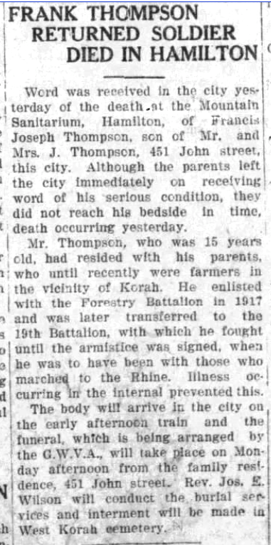Fils de Joseph et Sarah Jane Thompson, de 451, John St., Sault Ste. Marie, Ont.