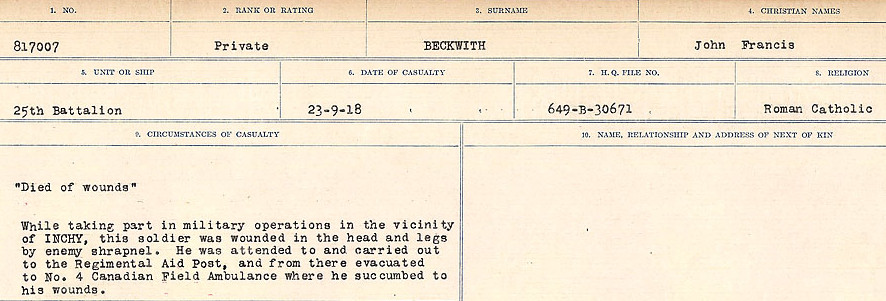 Galerie numérique de Soldat John Francis Beckwith