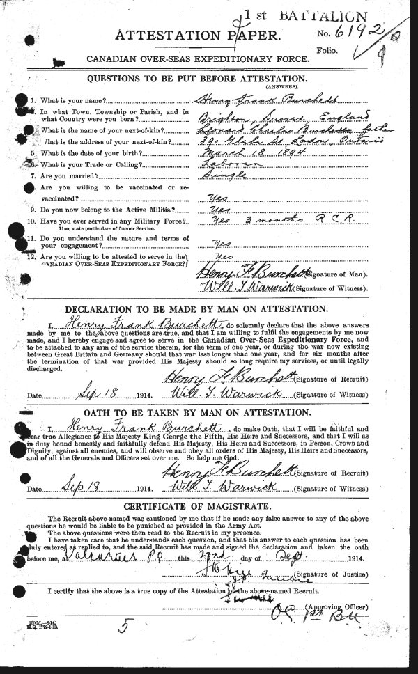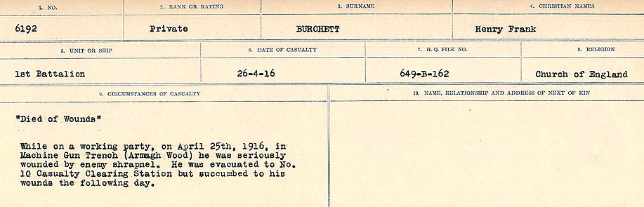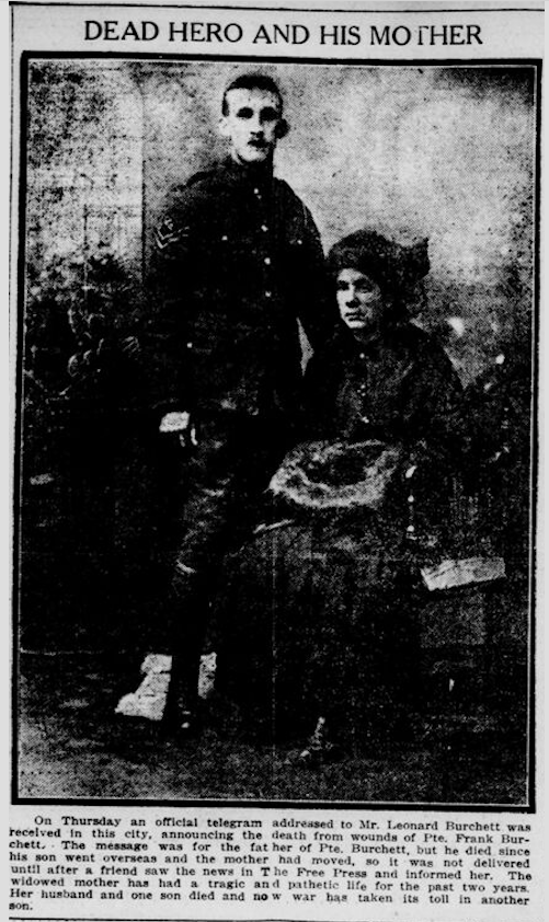 Fils du soldat Leonard Henry Burchett, décédé au service du 7th Regiment.