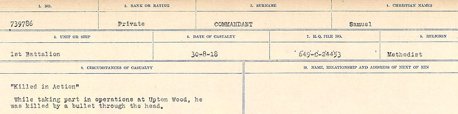 CIMETIÈRE « UPTON WOOD » Pas de Calais, France