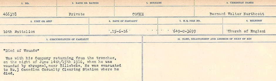 Galerie numérique de Soldat Bernard Walter Northcott Cooke