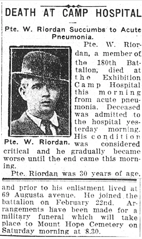 Époux de K. Riordan, de 69, Augusta Avenue, Toronto, Ontario.