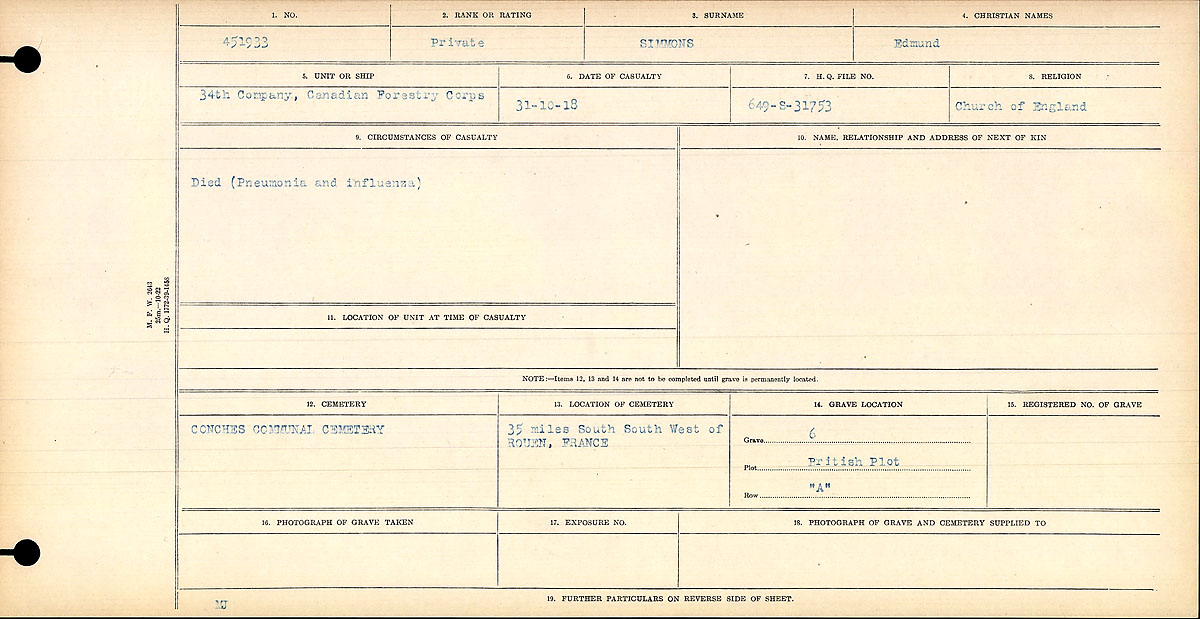 341 Coy. Fils de Alfred William et Ada Mary Ann Simmons, de Stret St., Setwich, Kent.