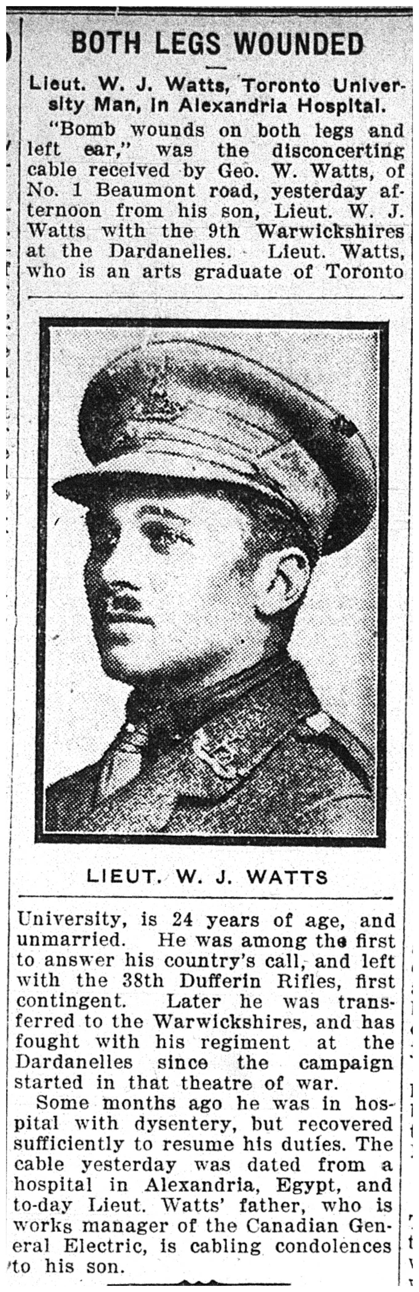 Galerie numérique de Lieutenant Wilfred John Watts