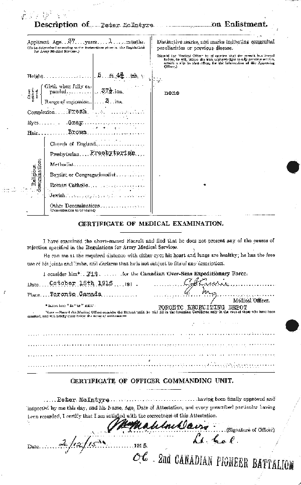 Fils de feu Donald et Ann McLaren McIntyre, de Comrie, Perthshire, Écosse.