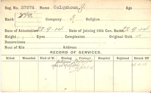 Fils de William et Elizabeth Colquhoun, de Omagh, Co. Tyrone, Irlande.