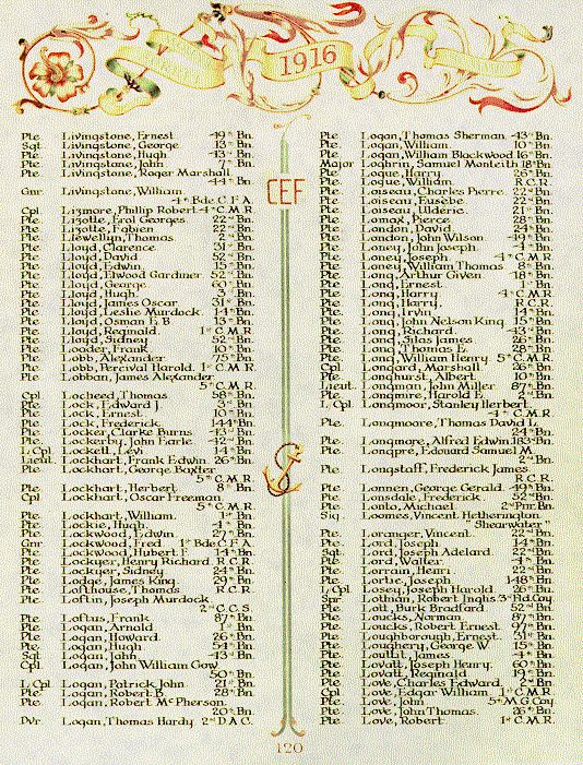 Page 120 du Livre du Souvenir de la Première Guerre mondiale.