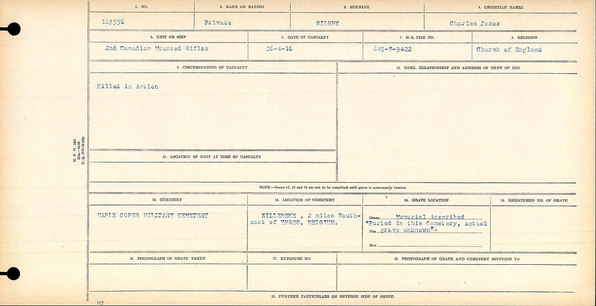 Unité/Régiment : 2nd Canadian Mounted Rifles (British Columbia Regt.)