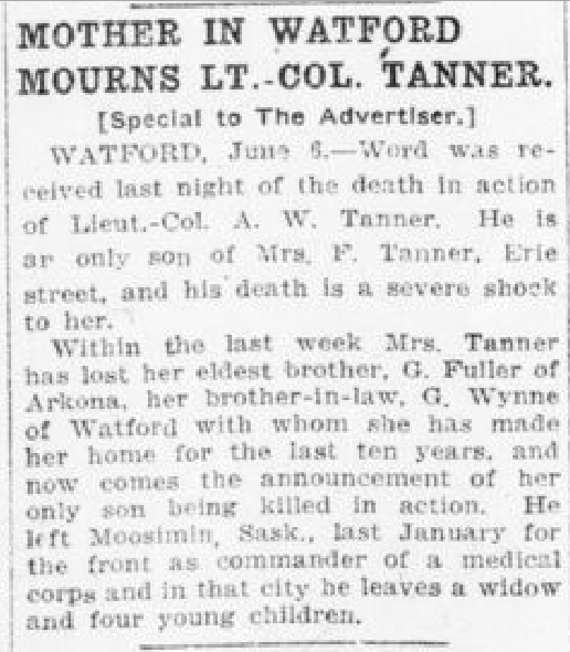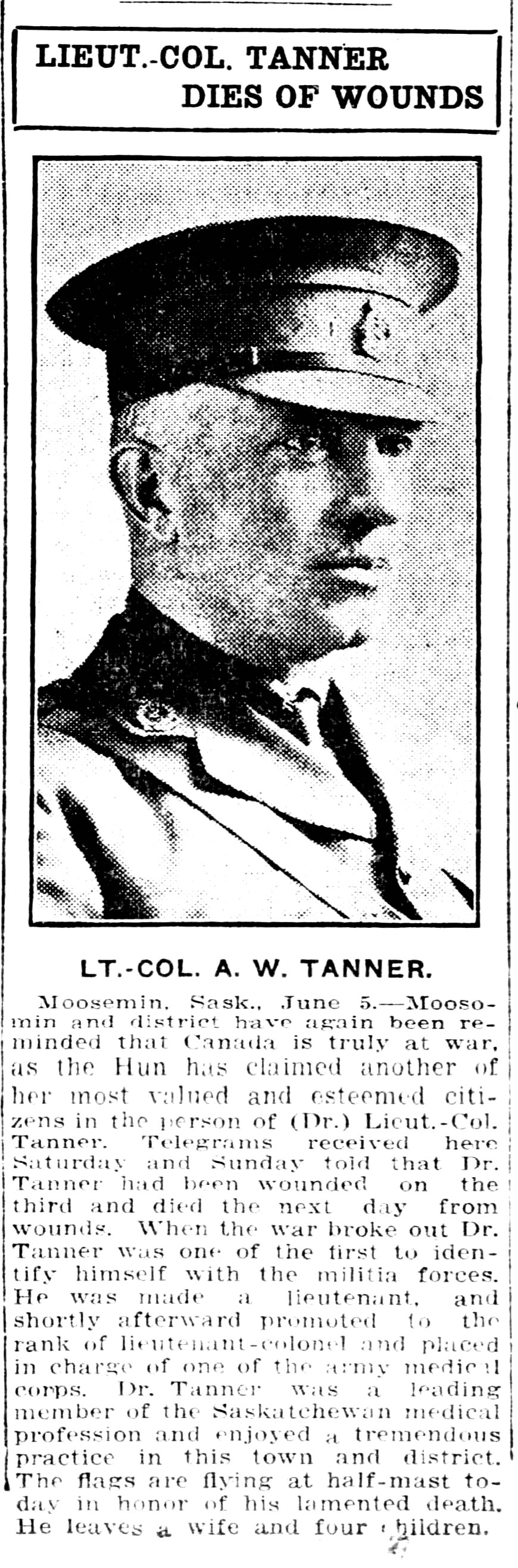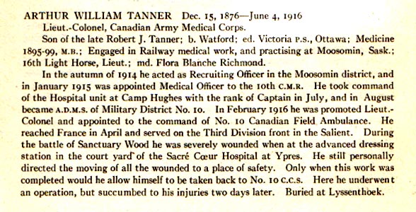 Fils de feu Robert J. et Sarah Fanny Tanner; époux de Flora B. Tanner, de Moosomin, Saskatchewan. Né à Watford, Ontario. Educated at Ottawa Schools et Toronto University.