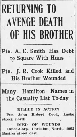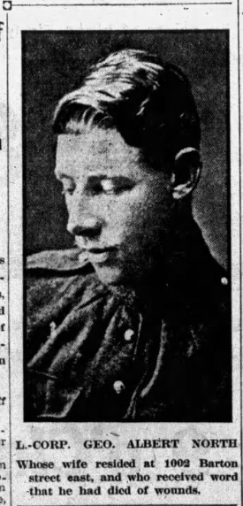 Fils de George et Margaret North, de Halifax, Nouvelle-Écosse; époux de Christina Smith (née North), de 18, Cambridge Avenue, Hamilton, Ontario, Canada.