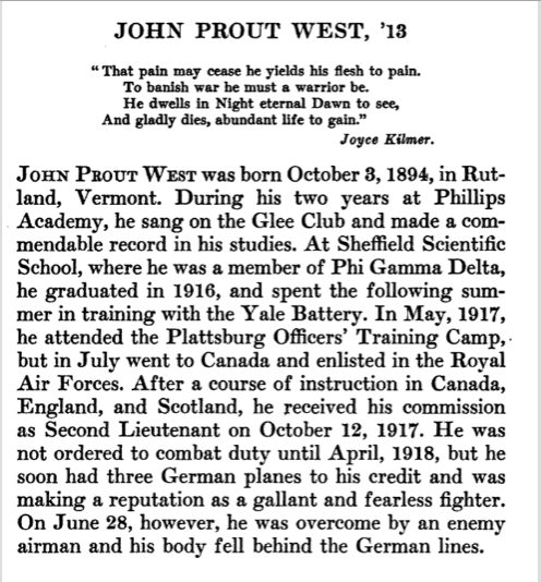 Fils de Charles H. et Mary Prout West, de Rutland, Vermont.