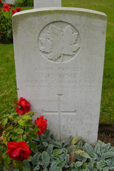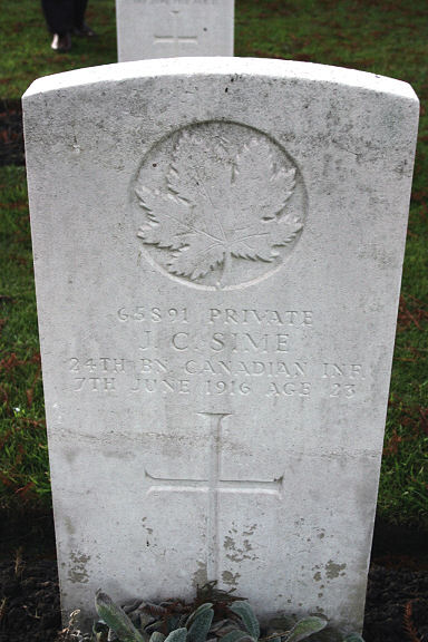 Fils de James et Catherine B. Sime, de 5, Temple Crescent, Crail, Fife, Écosse.
